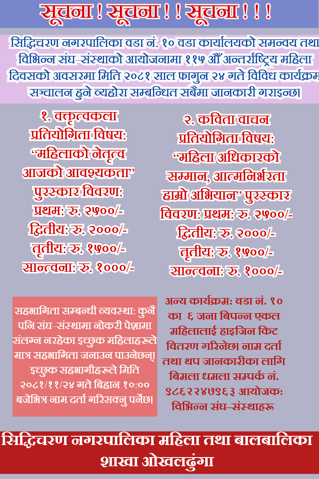 ओखलढुंगा । जिल्लाको सिद्धीचरण नगरपालिका–५ बर्णालुमा प्रथम वडा स्तरीय खुल्ला फुटबल प्रतियोगिता सुरु भएको छ।...